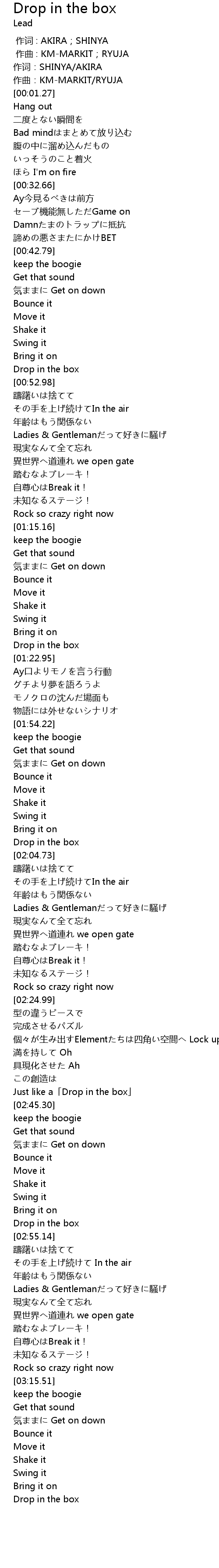 | [02:02.93] | Drop in the box |