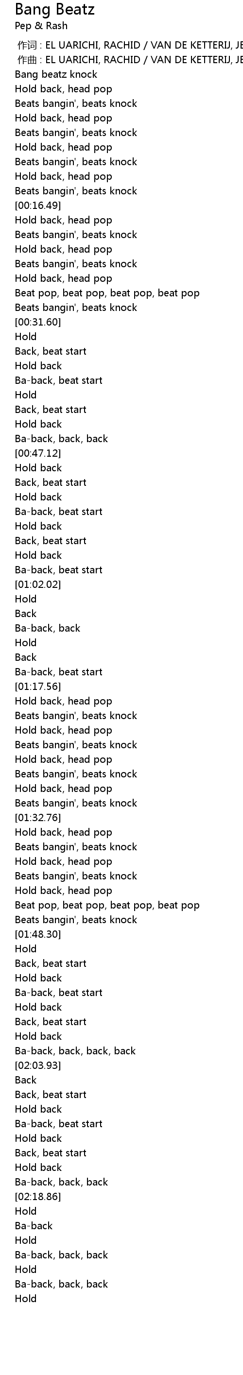 | [01:42.27] | Beat pop, beat pop, beat pop, beat pop |