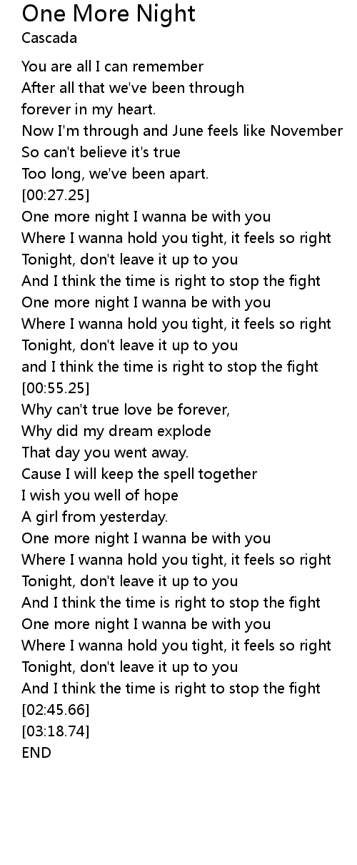 One more night I wanna be with you |