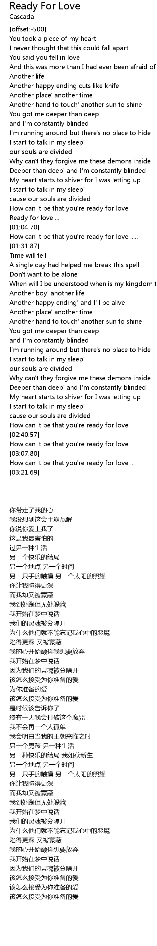How can it be that you're ready for love ..... |