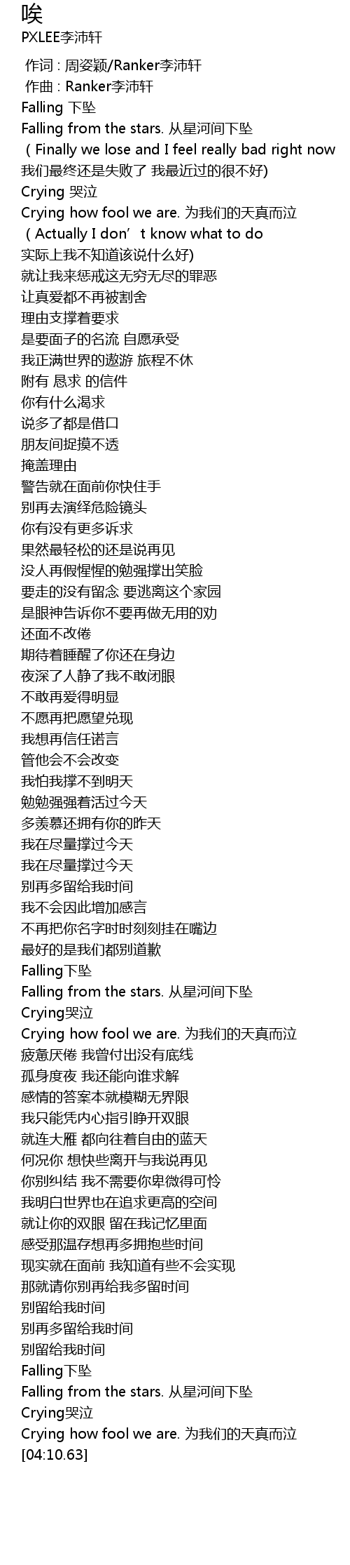 | [03:53.16] | Crying哭泣 |