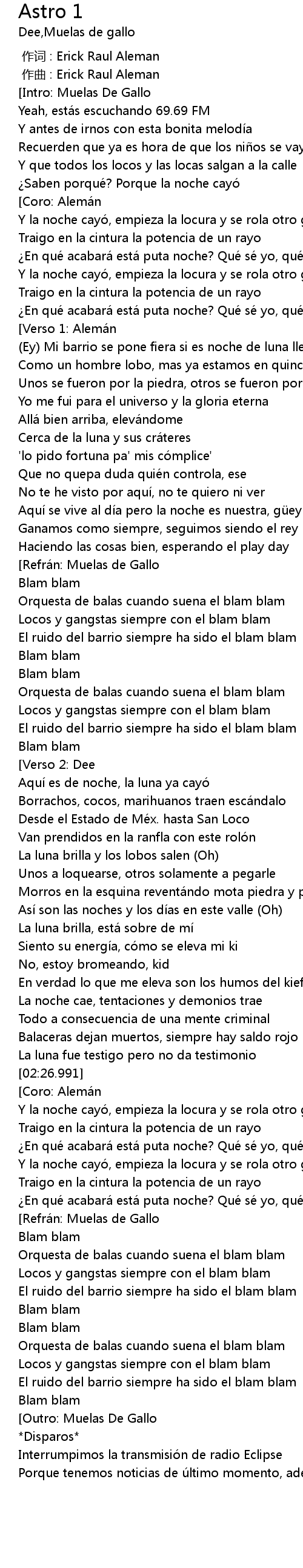 | [01:30.743] | Locos y gangstas siempre con el blam blam |