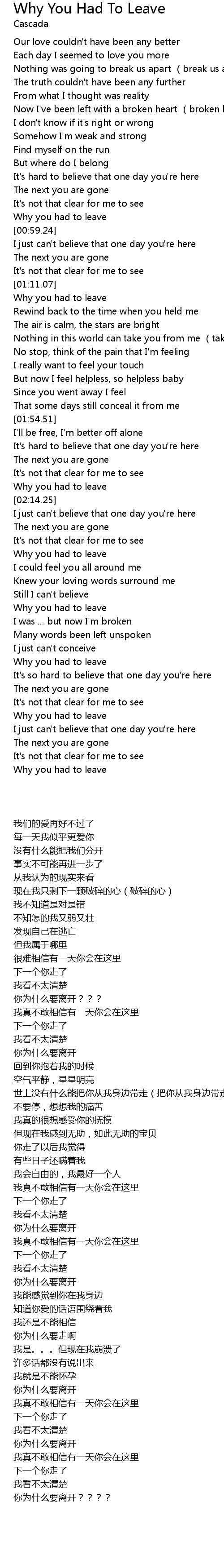 | [00:25.71] | Now I' ve been left with a broken heart broken heart |