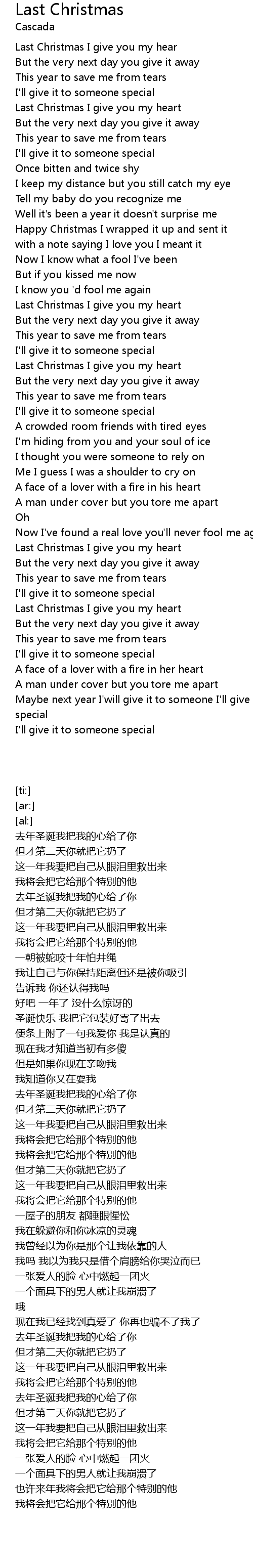 Last Christmas I give you my hear |
