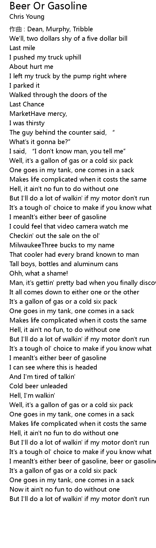 | I meanIt' s either beer of gasoline, beer or gasoline | |
