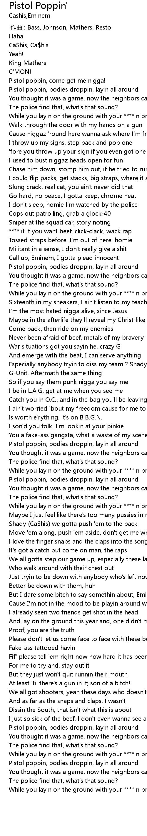 | [00:13.343] | Pistol poppin, come get me nigga! |