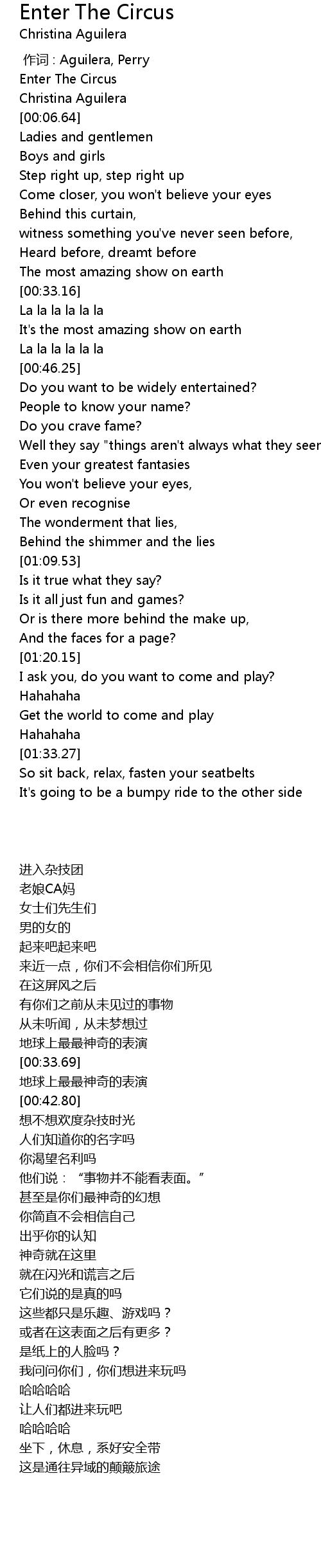 | [00:00.00] | 作词 : Aguilera, Perry |
