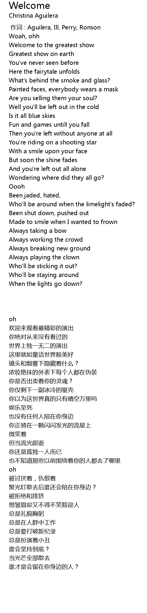 | [00:00.00] | zuò cí : Aguilera, Ill, Perry, Ronson |