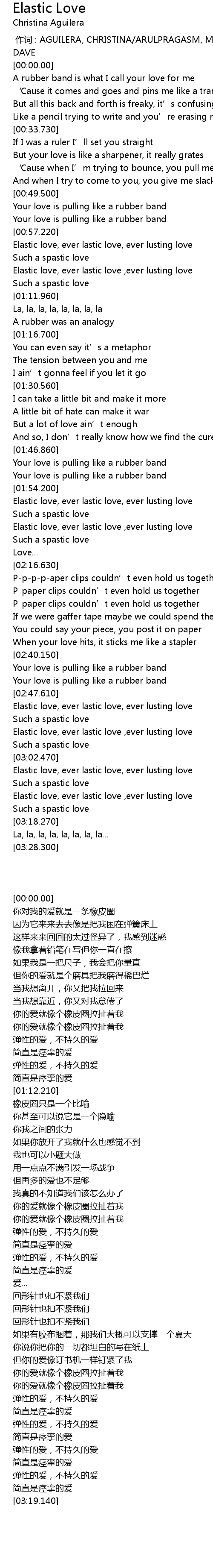 | [02:55.370] | Elastic love, ever lastic love , ever lusting love |