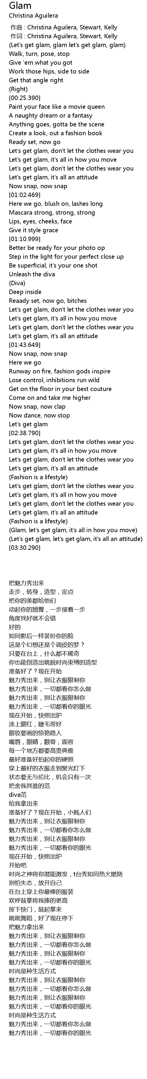 | [03:09.230] | Glam, let' s get glam, it' s all in how you move |