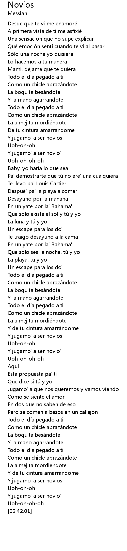 | [01:42.22] | Y jugamo' a ser novios |