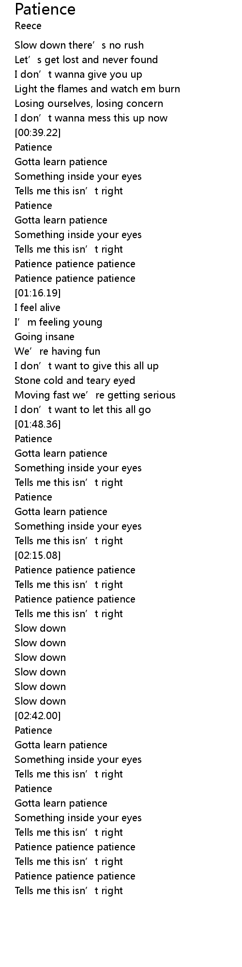 | [00:41.21] | Patience |