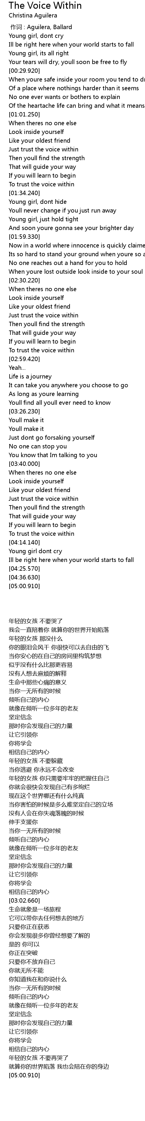 | [02:23.340] | When youre lost outside look inside to your soul |