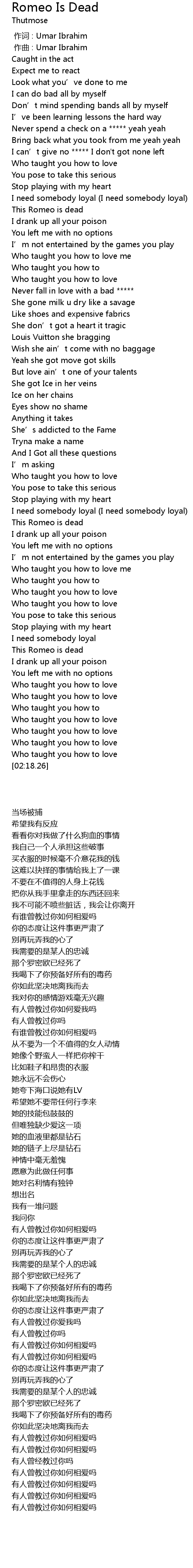 | [01:31.66] | This Romeo is dead |