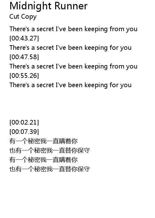 | [00:50.45] | 有一个秘密我一直瞒着你 |