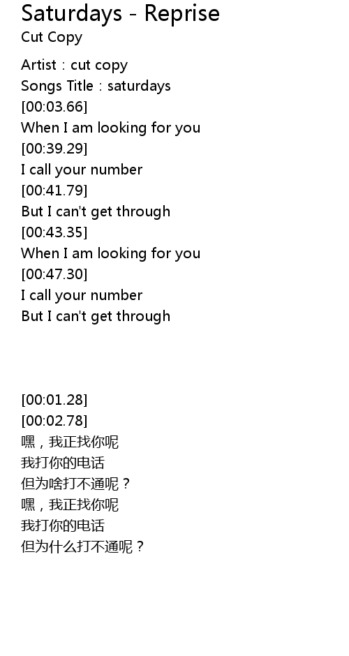 | [00:01.28] | Artist:cut copy |