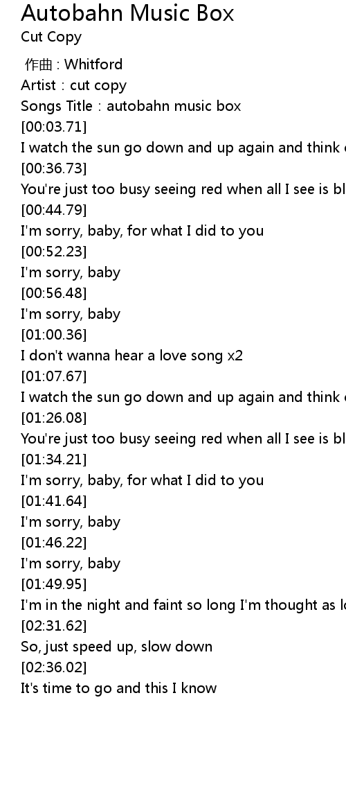 | [00:01.52] | Artist:cut copy |