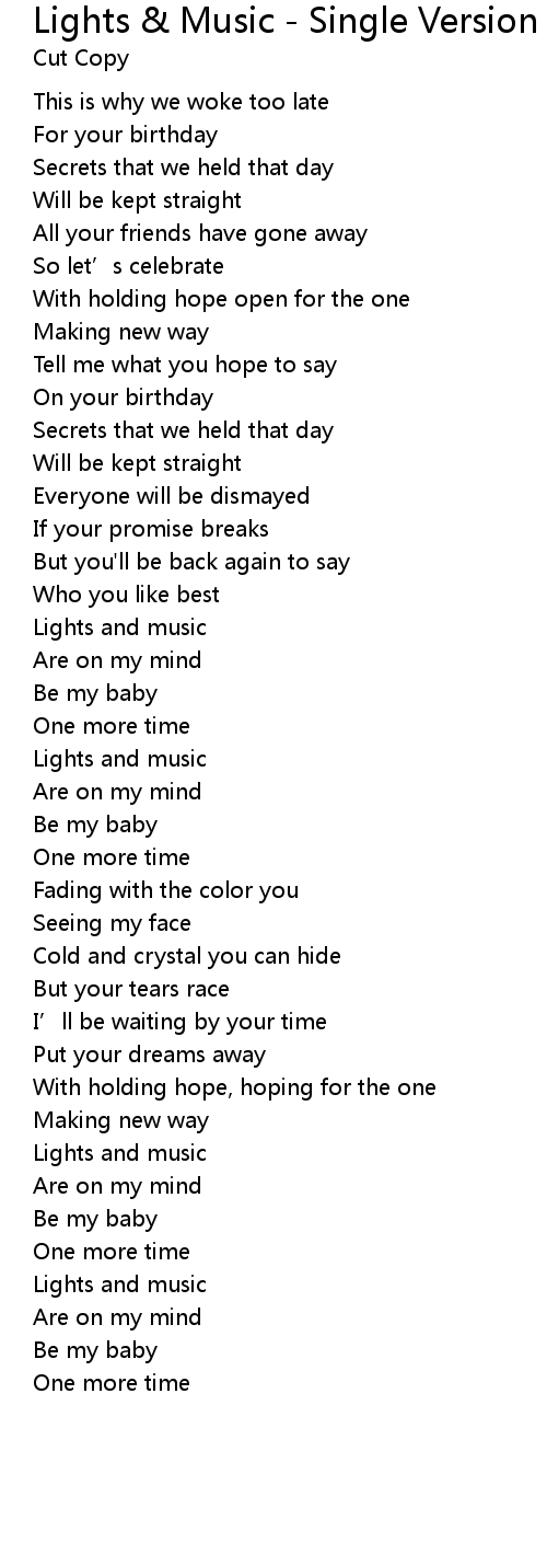 | 歌曲 | Lights & Music - Single Version |