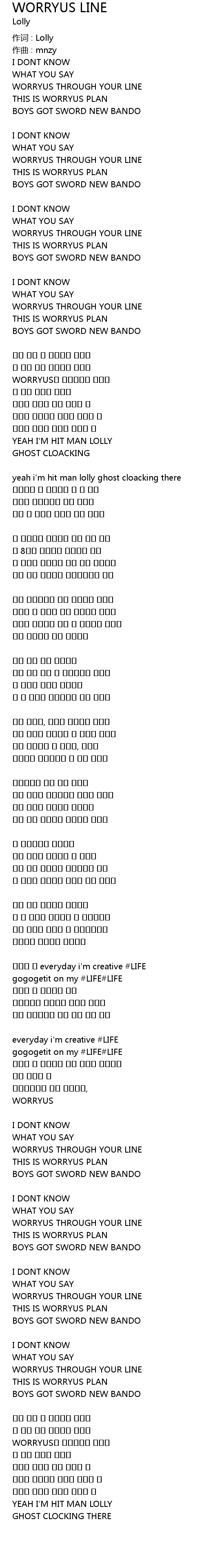 | 歌曲 | WORRYUS LINE |