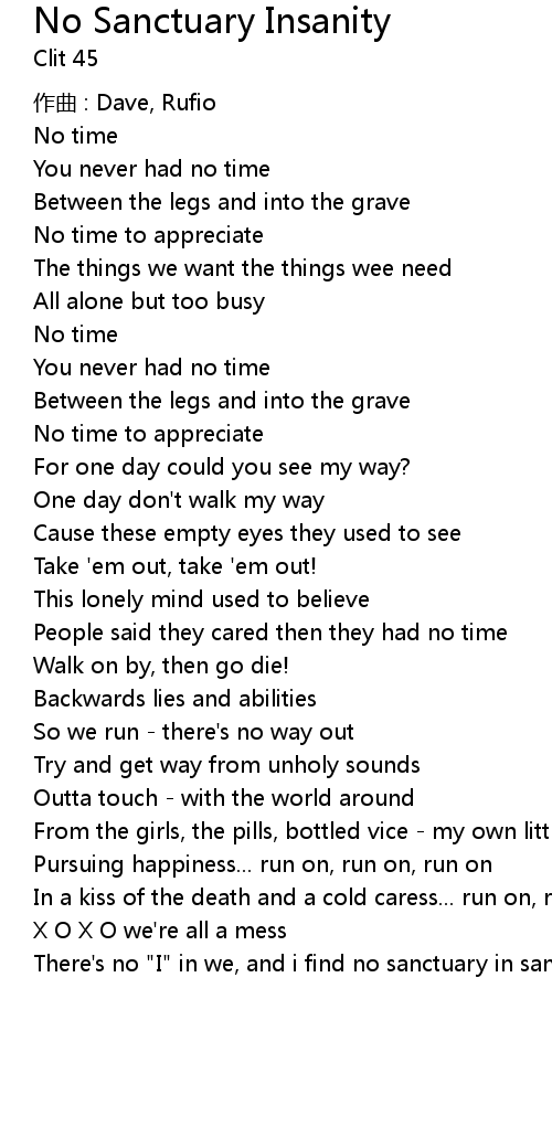 | 歌曲 | No Sanctuary Insanity |