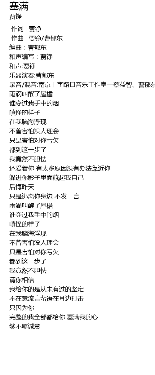 | [00:00.000] | 作词 : 贾铮 |