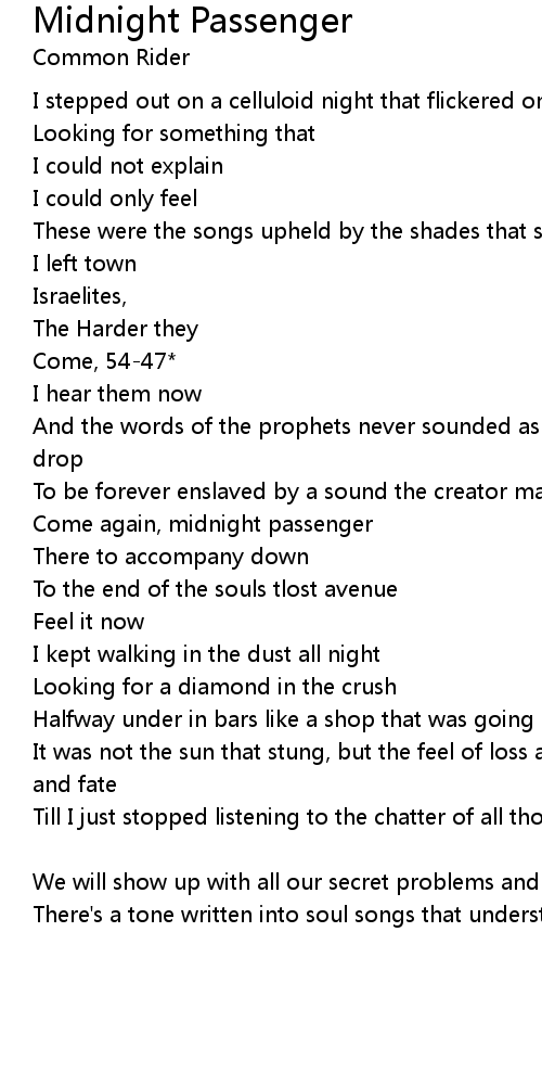 Come again, midnight passenger |