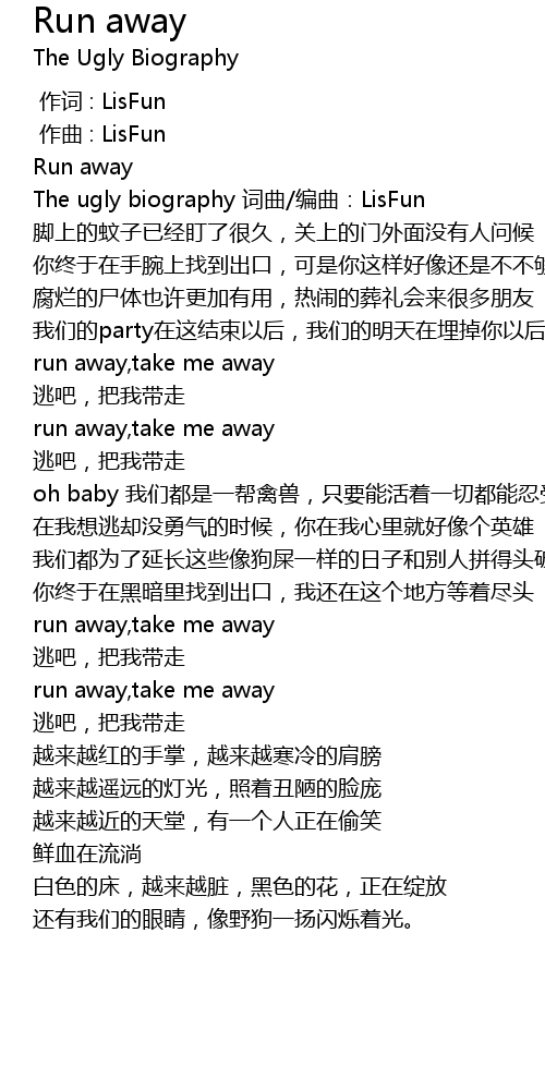 | [00:03.964] | The ugly biography 词曲/编曲:LisFun |