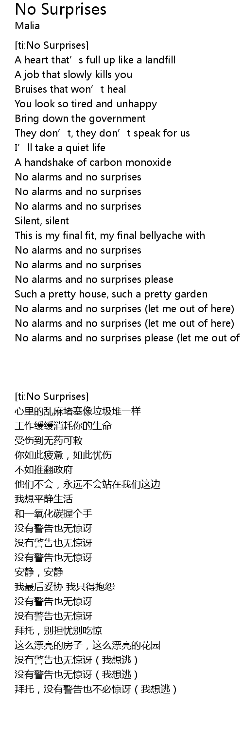 | [02:51.17] | No alarms and no surprises please (let me out of here) |