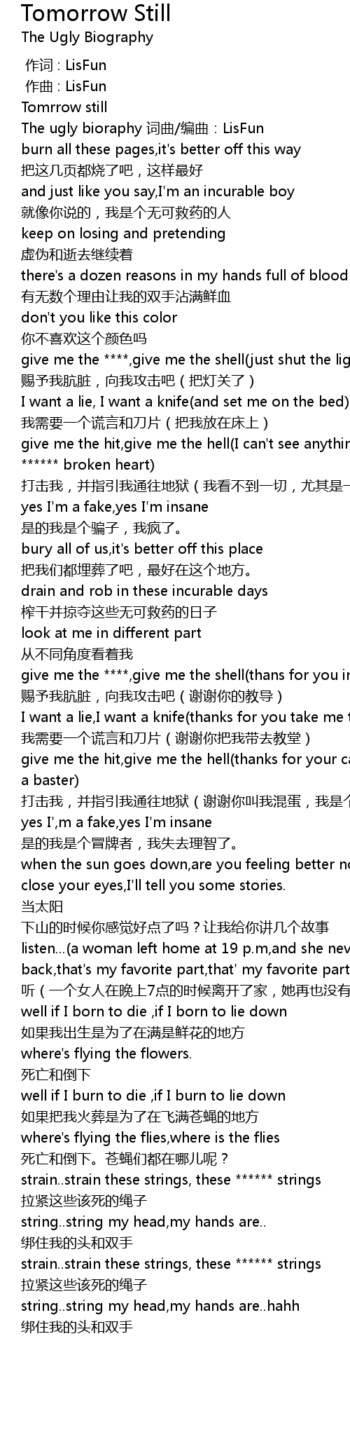 | [00:15.945] | The ugly bioraphy cí qǔ biān qǔ: LisFun |