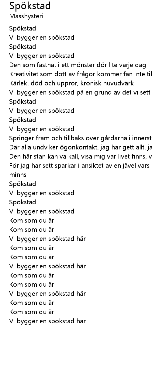 | 歌曲 | Spökstad |