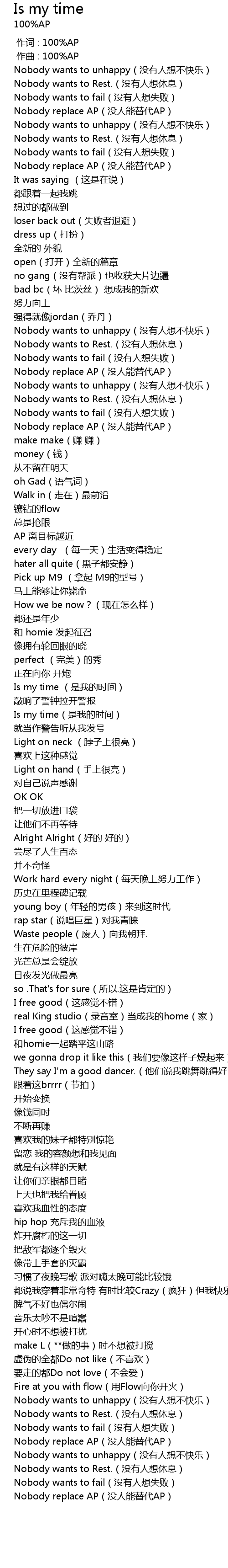 | [01:13.490] | Is my time shì wǒ de shí jiān |