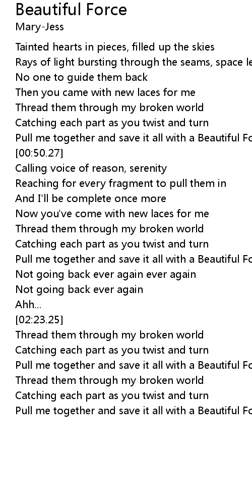 | [00:42.71] | Pull me together and save it all with a Beautiful Force |