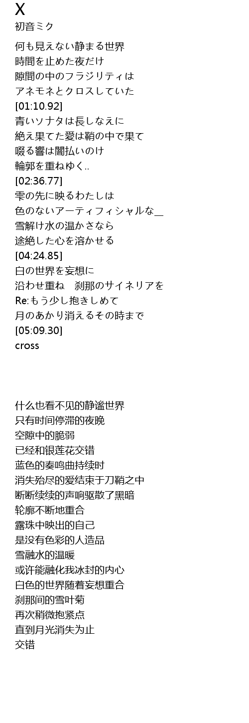 | [04:25.87] | 白色的世界随着妄想重合 |