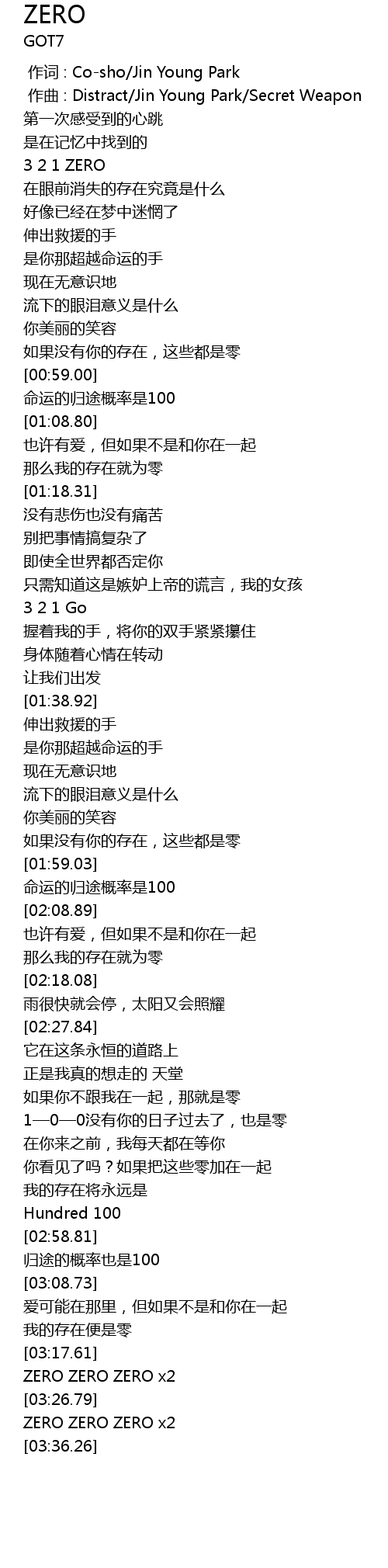 | [03:32.10] | ZERO ZERO ZERO x2 |