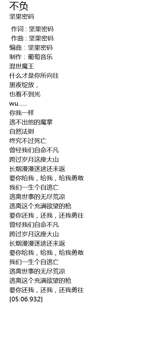 | [00:28.392] | 编曲:坚果密码 |