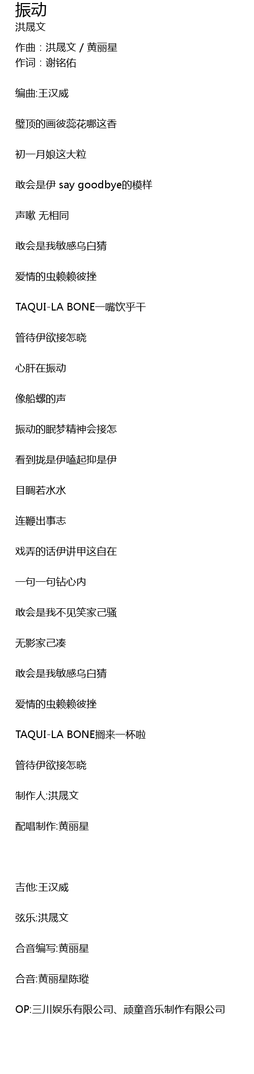 | 作曲:洪晟文 / 黄丽星 | |