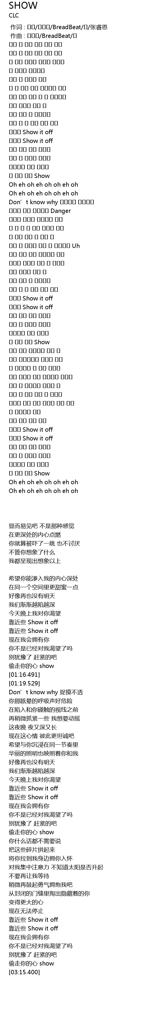 | [03:00.662] | 靠近些 Show it off |