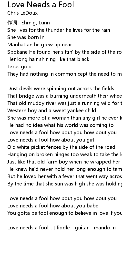| Love needs a fool how about you girl | |
