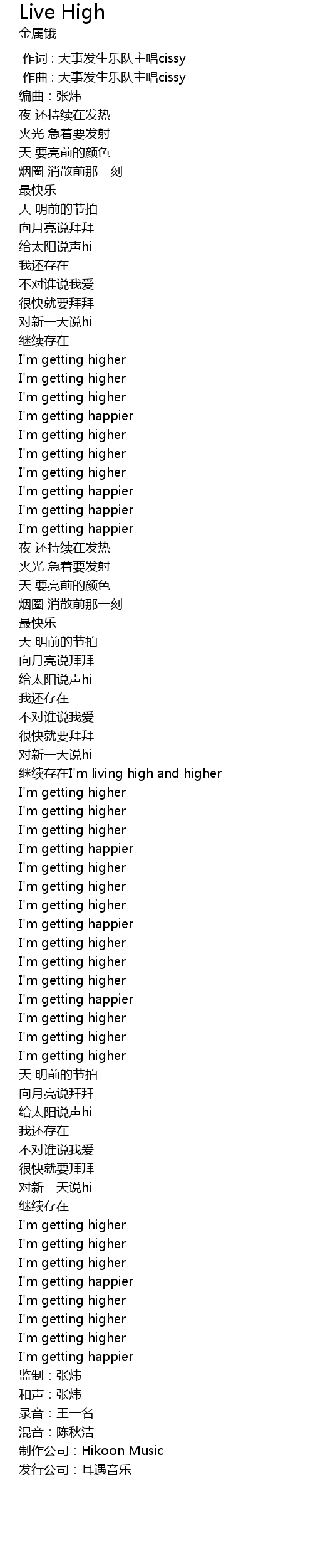 | [01:57.40] | ji xu cun zai I' m living high and higher |