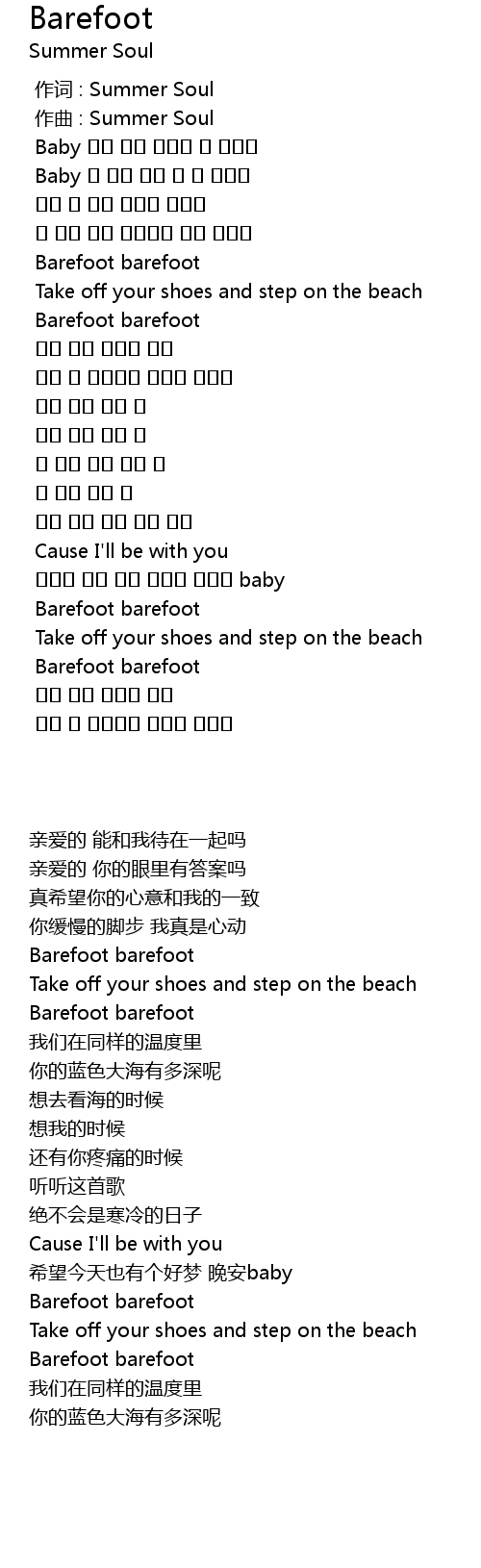 | 歌曲 | Barefoot |