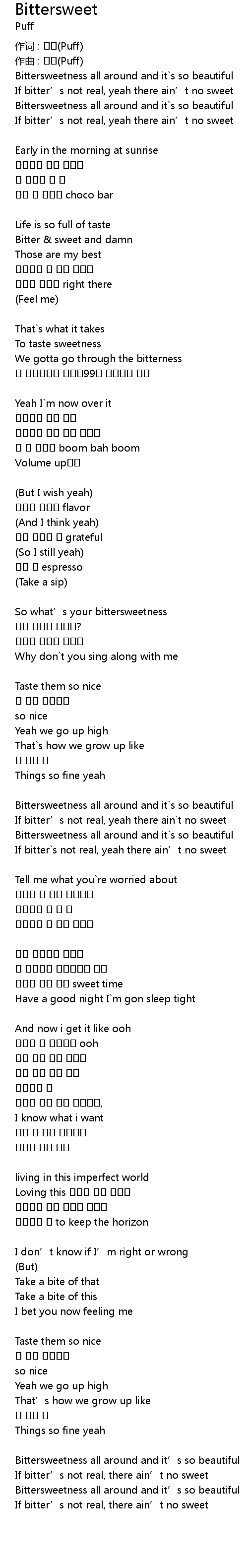 | 作词 : 퍼프(Puff) | |