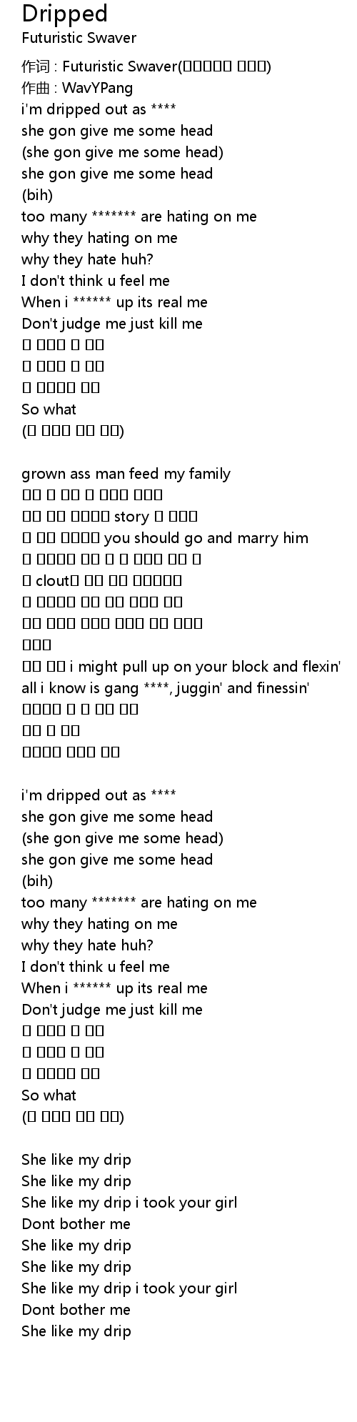 | 歌曲 | Dripped |