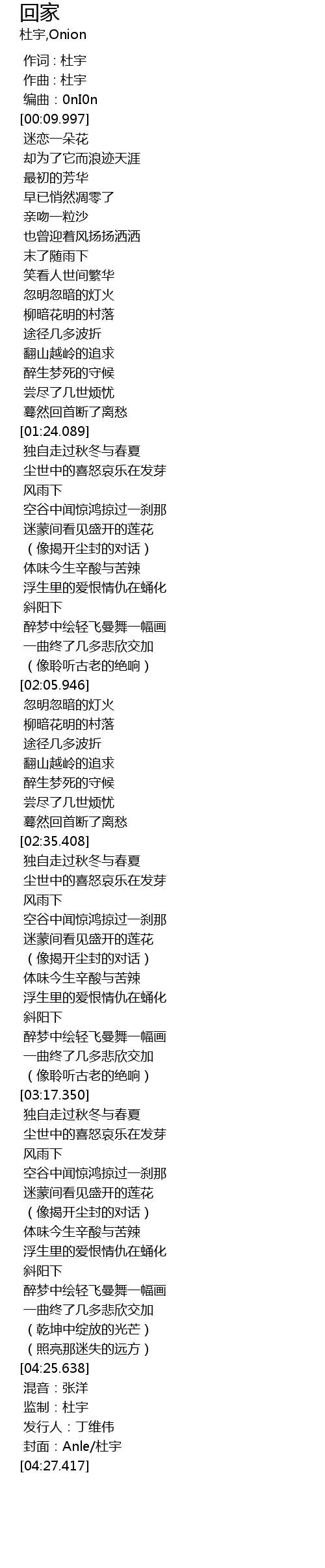 | [00:01.000] | zuò qǔ : dù yǔ |