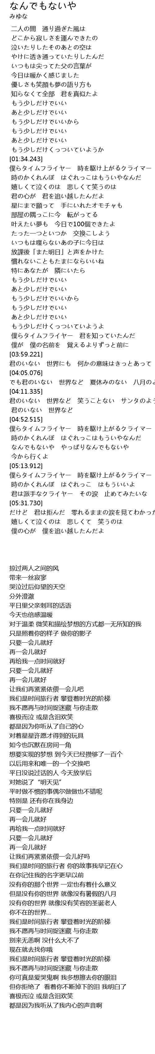 | [01:34.243] | 僕らタイムフライヤー 時を駆け上がるクライマー |
