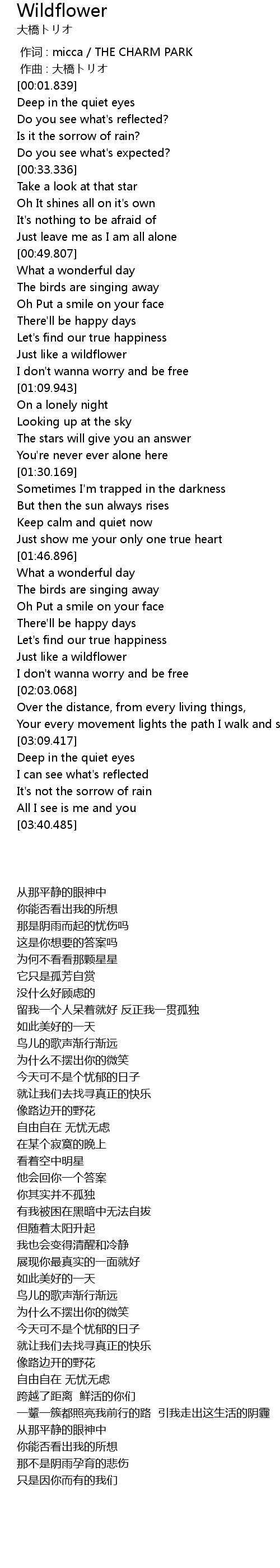 | [01:00.237] | Just like a wildflower |