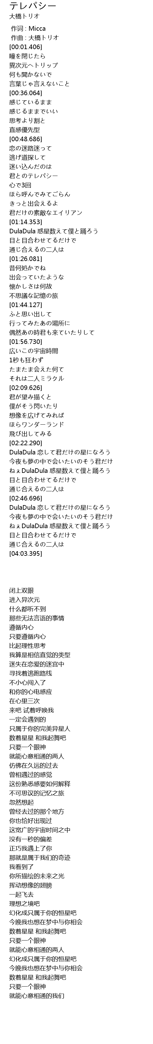 | [00:58.326] | 君とのテレパシー |