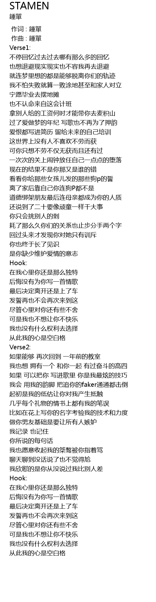 | [01:59.758] | 我会 用我的韵脚 把追你的faker通通都击倒 |