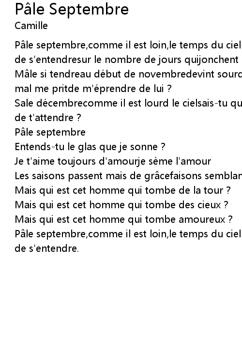 | P le septembre, comme il est loin, le temps du ciel sans cendresil serait temps de s' entendre. |