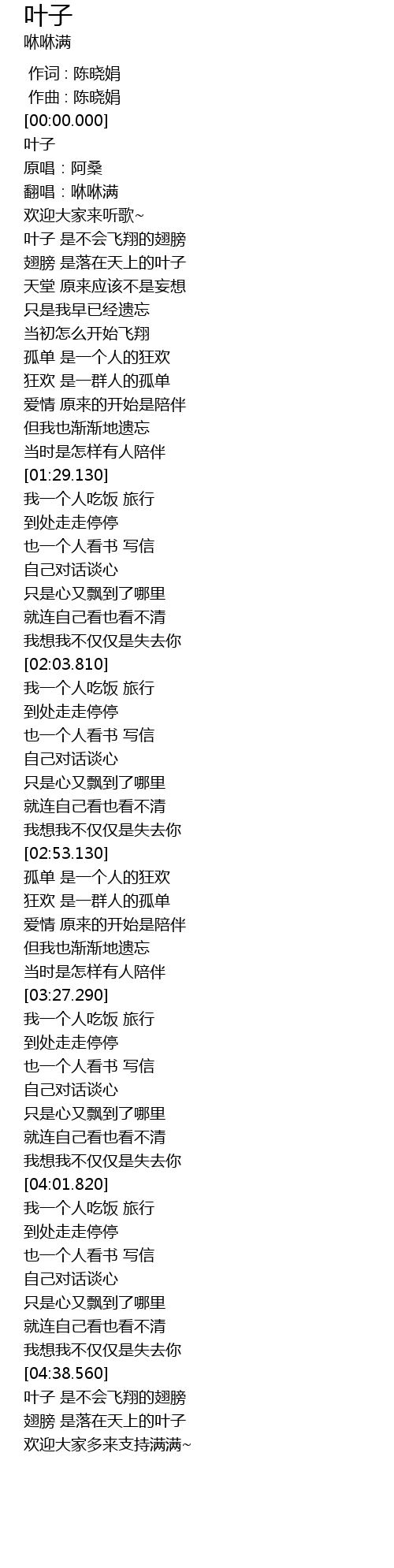 | [00:30.180] | 翅膀 是落在天上的叶子 |