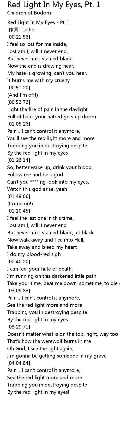 | 歌曲 | Red Light In My Eyes, Pt. 1 |